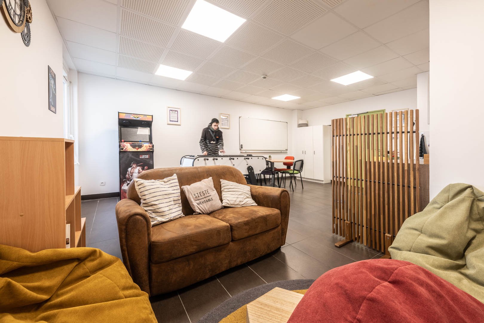 Vous pourrez également réserver d’une salle commune, parfaite pour des travaux de groupes ou des soirées entre amis.